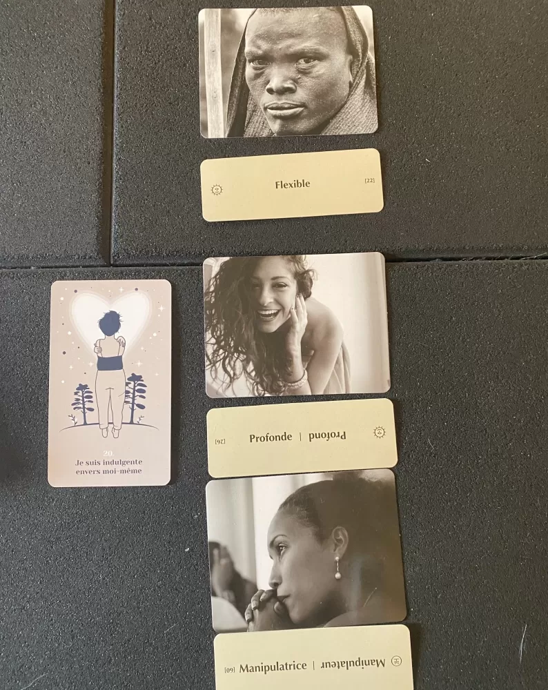 Bien sur que lorsque l’on réalise un choix face caché, il y a le droit à la pioche ? pour changer si le mot et/ou la photo ne résonne pas du tout en vous à l’instant T, ne vibre pas et ne sonne pas juste mais il est bien de le faire en conscience : pourquoi faire un autre choix.